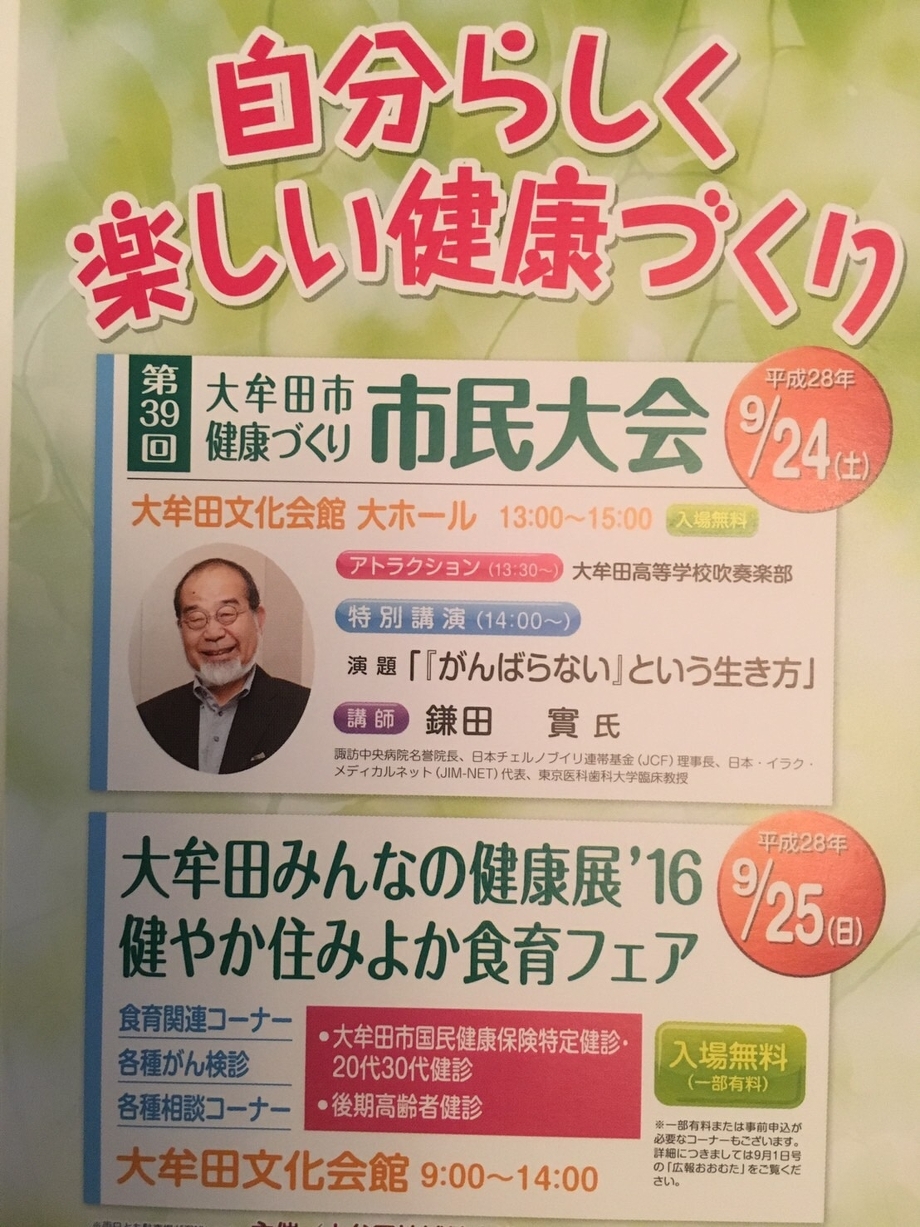 講演はテレビや雑誌などでおなじみの鎌田實先生、